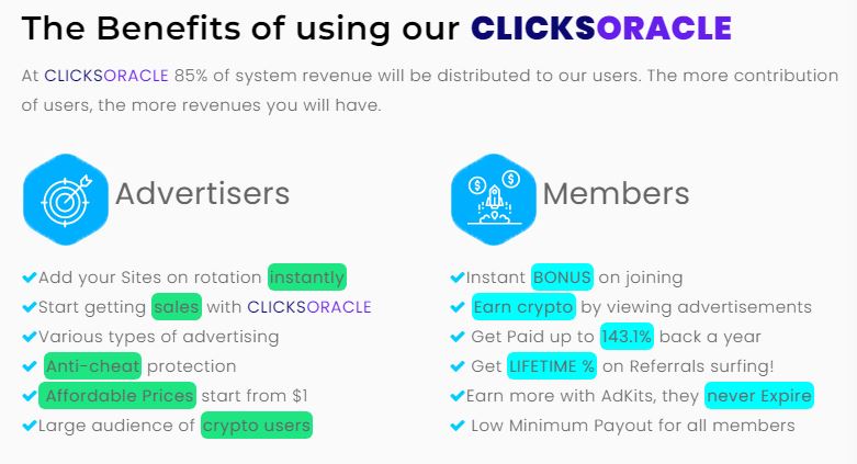 But if you are keen to promote, you will also be rewarded BIG TIME with 10% LIFETIME Recurring commissions on your referrals' daily surfing and up to 40% commissions on Advertising!